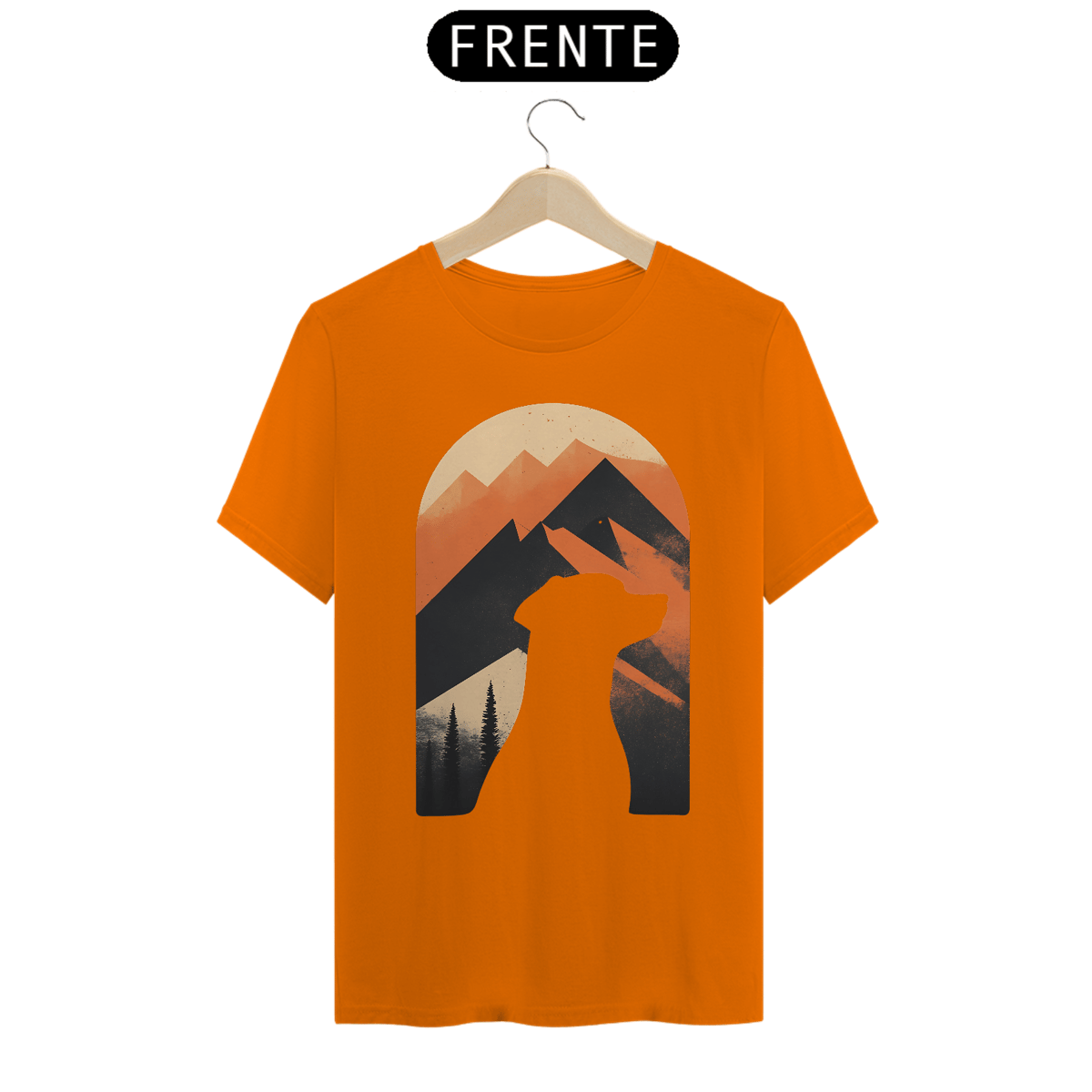 Incorpore o espírito de aventura com a Camiseta Aventura Canina, uma peça que celebra a conexão entre o melhor amigo do homem e a grandiosidade da natureza. O design exclusivo apresenta a silhueta de um cachorro em cor sólida, com um fundo de montanhas majestosas em tons de preto, cinza e laranja vibrante, criando um contraste marcante e visualmente impactante.