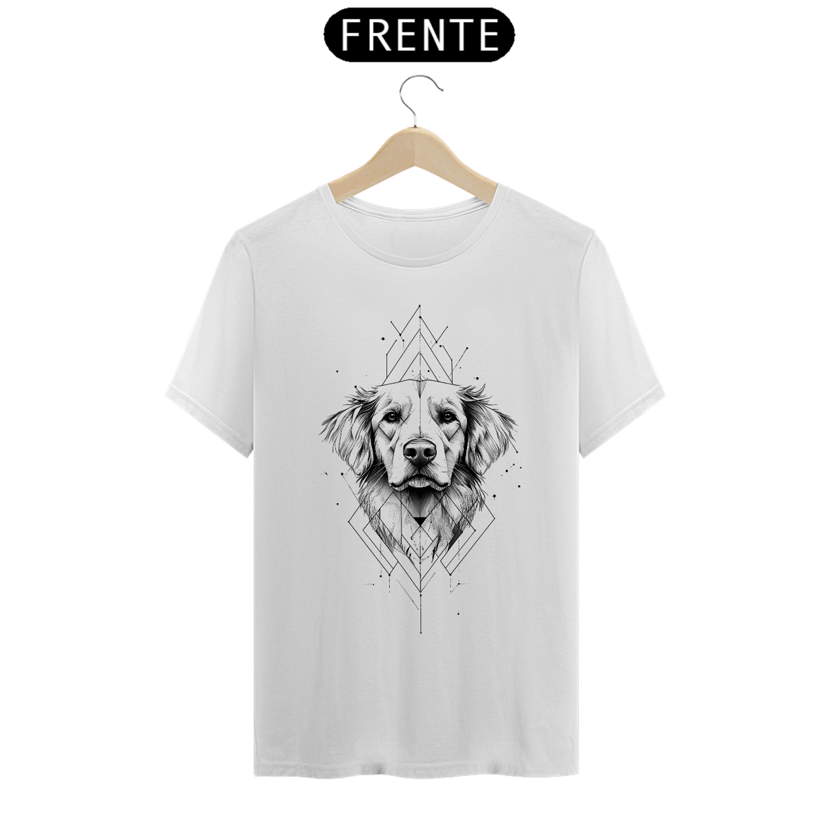 Mostre seu amor pelo fiel companheiro com a Camiseta Golden Geométrico, uma peça única que une o carisma do Golden Retriever a um design estilizado em formas geométricas. O rosto do adorável cão ganha destaque com tons clássicos de preto, branco e cinza, em um estilo tatuagem que exala modernidade e sofisticação.